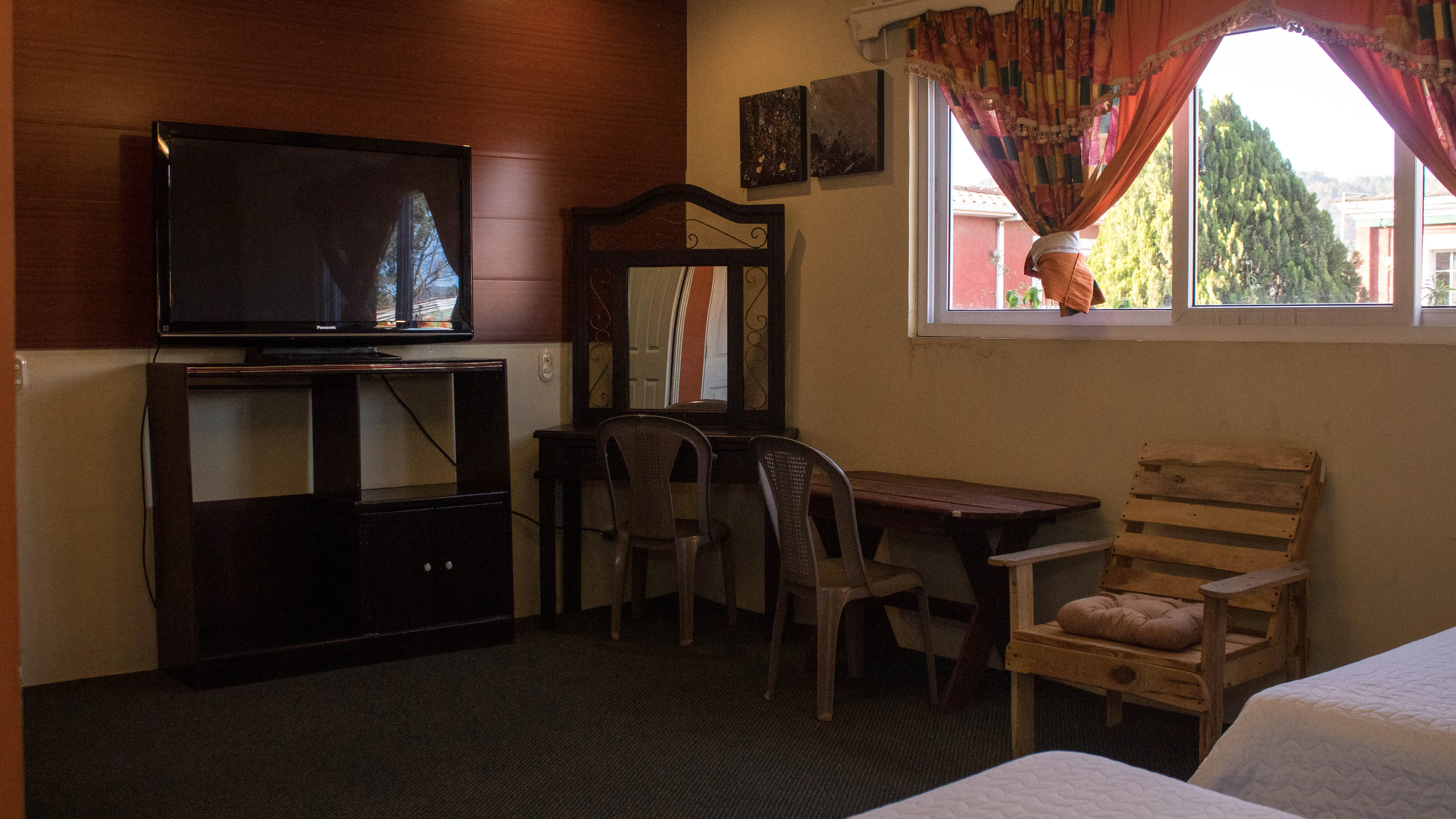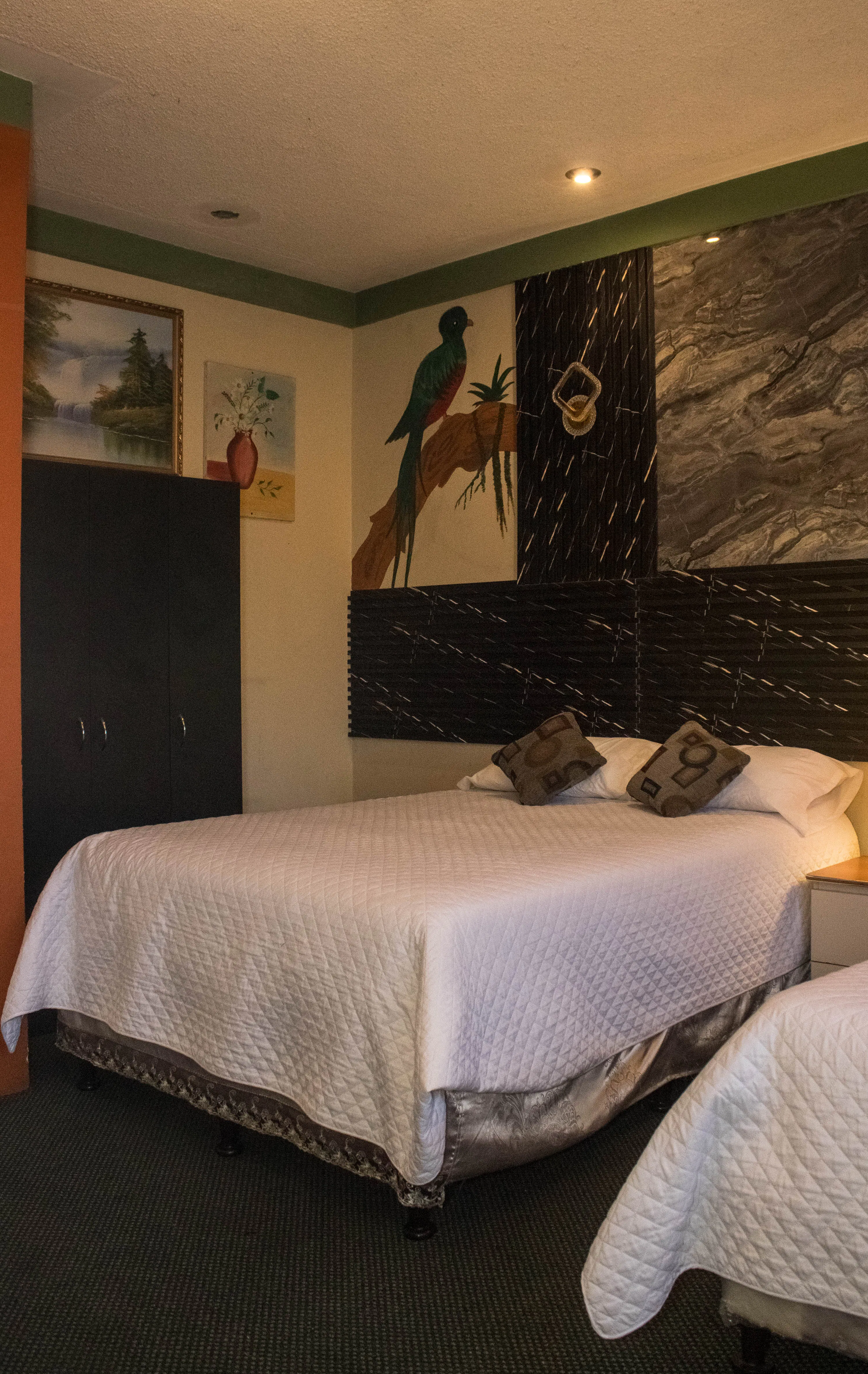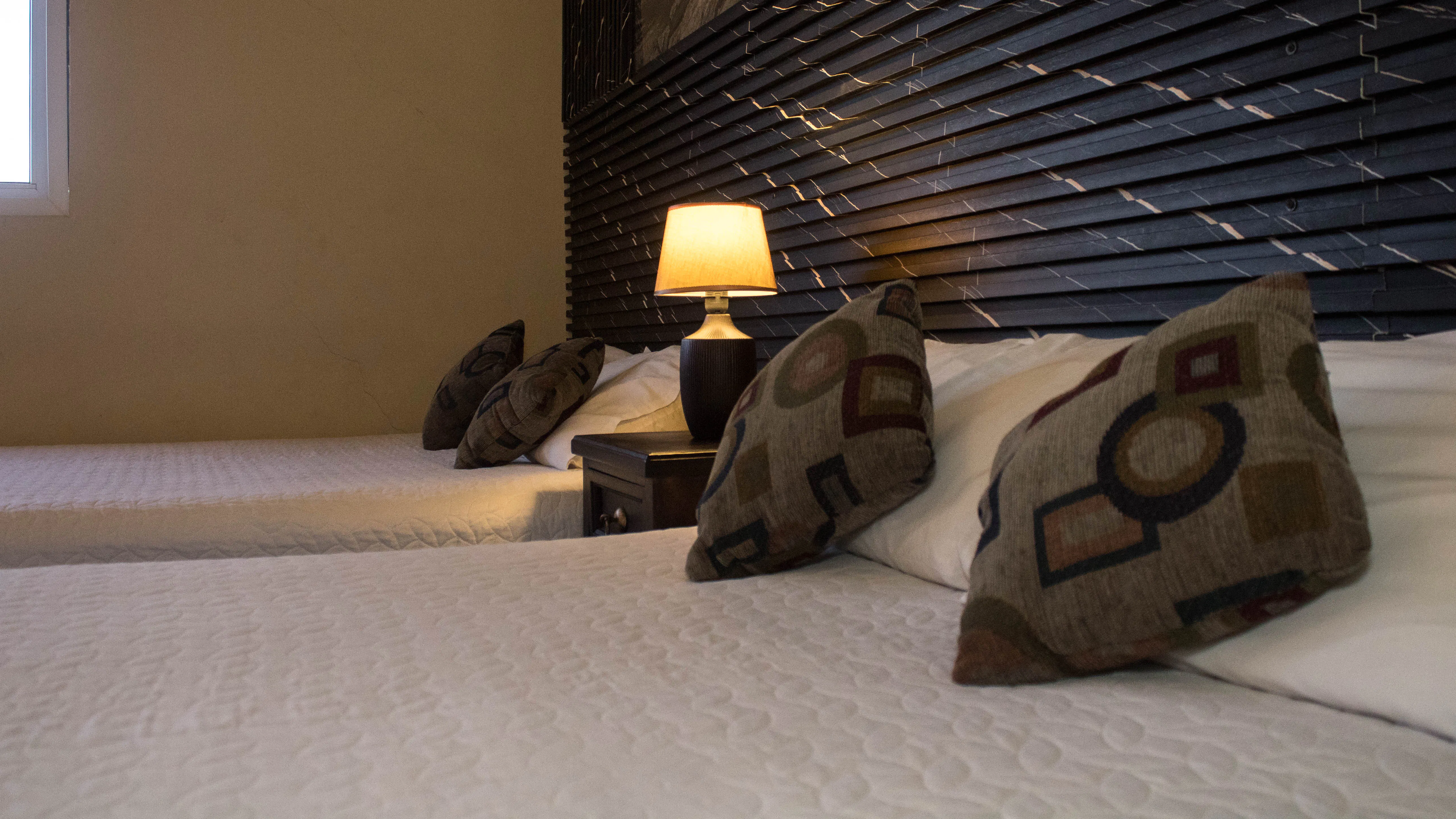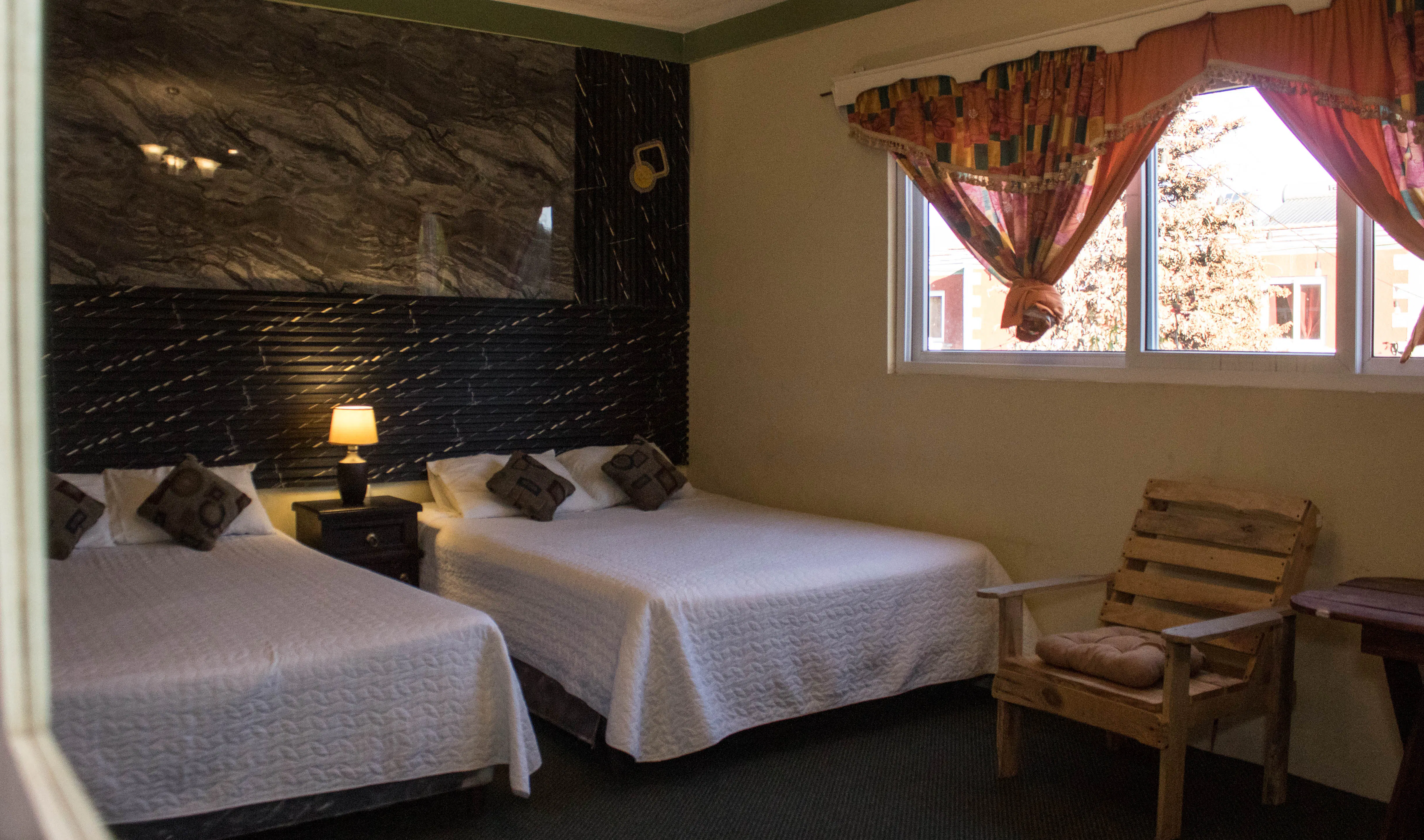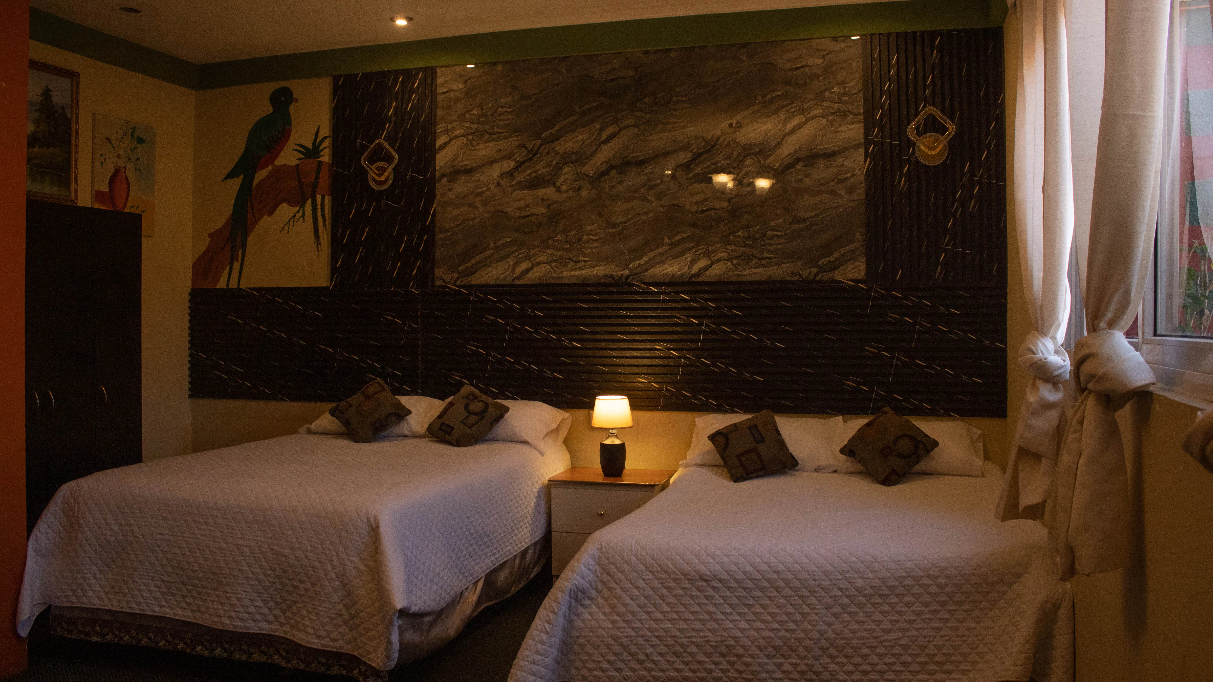 Habitación confort, de nivel superior, ideal para 2 o 4 personas. Ofrece un ambiente más elegante y cuidado, con 2 camas matrimoniales, baño privado con agua caliente, TV por cable, Wi-Fi, parqueo privado y seguridad 24 horas. Ideal para quienes buscan mayor confort y comodidad.