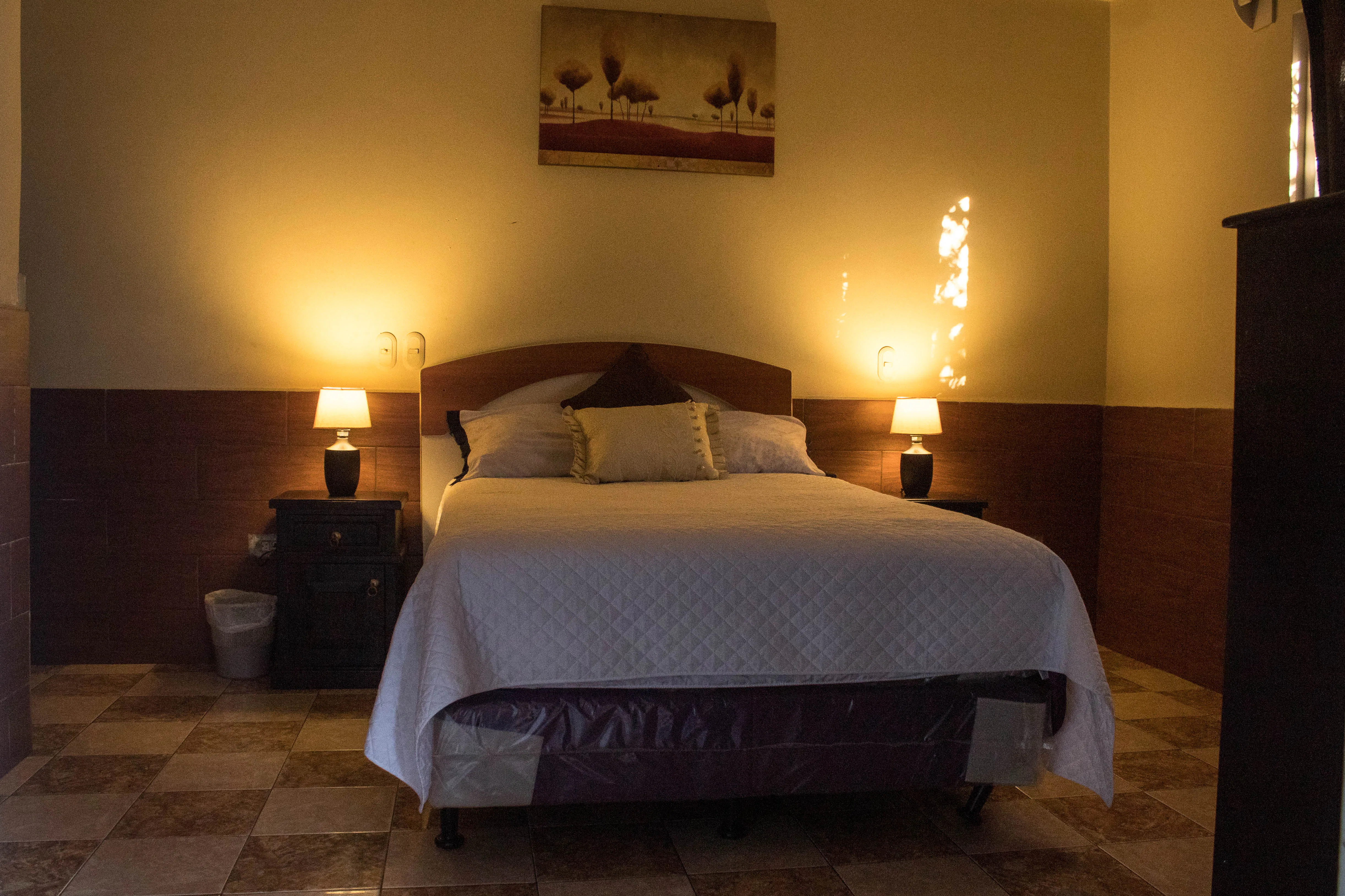 Habitación clásica cómoda y tranquila, ideal para 1 o 2 personas. Cuenta con 1 cama matrimonial, baño privado con agua caliente, televisión por cable, Wi-Fi, parqueo privado y seguridad 24 horas. Ideal para descansar con mayor comodidad.